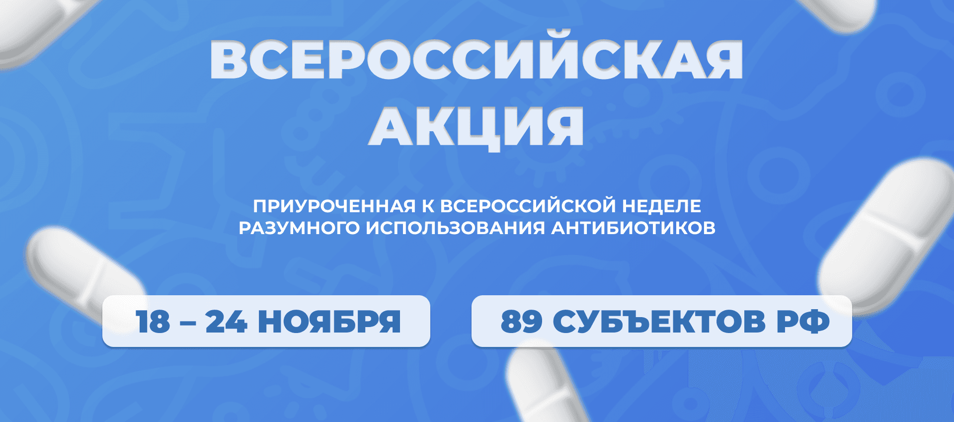 Всероссийская акция, приуроченная к Всероссийской неделе разумного использования антибиотиков, пройдет с 18 по 24 ноября. Добровольцы расскажут жителям 89 регионов России о том, как правильно использовать такие лекарственные средства.