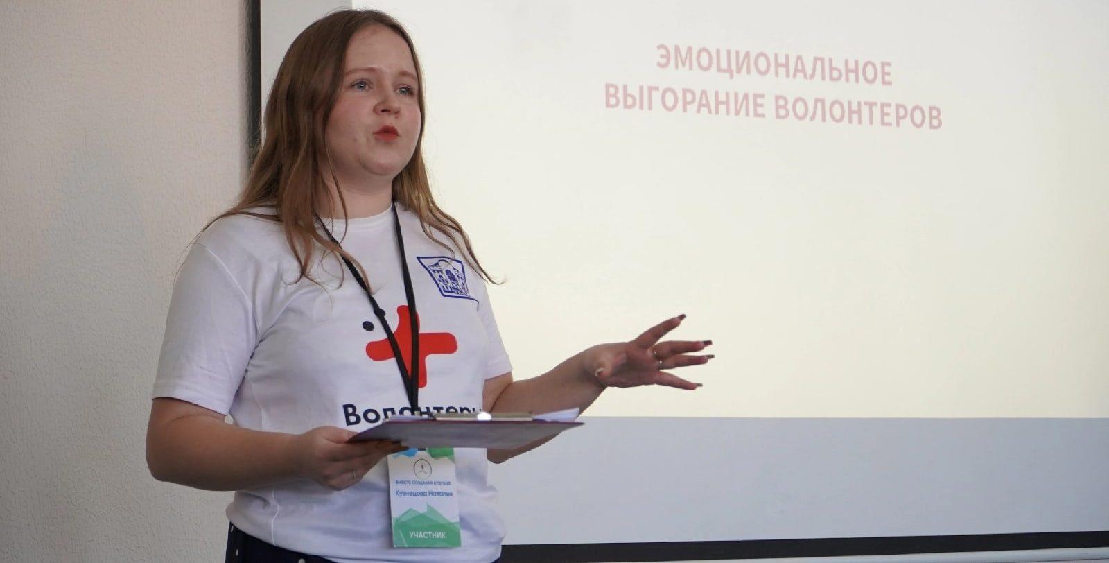 Координатор направления по «Санитарно-профилактическому просвещению» Наталья Кузнецова выступила на площадке по эмоциональному выгоранию, а также рассказала о деятельности ВОД «Волонтеры-медики». Добровольцы презентовали участникам форума направления деятельности волонтеров-медиков и рассказали как правильно организовать добровольческую деятельность.