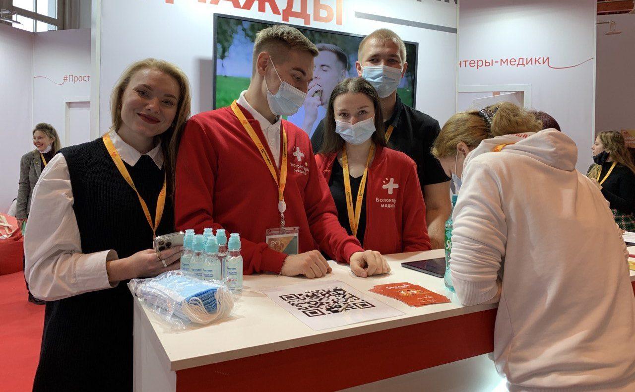В рамках выставочной программы форума размещено более 30 стендов, среди которых свое движение представили ВОД «Волонтеры-медики». Добровольцы проводят для участников активность «Скажи Спасибо», где гости форума могут подписать открытку со словами благодарности волонтерам, которые ребята получат через региональных координаторов. Также в рамках форума волонтеры-медики организовали донорскую акцию. Участники форума могут сдать кровь на типирование, что позволит им войти в Федеральный регистр доноров костного мозга Российской Федерации. Донорская акция будет проходить на протяжении всех дней форума.