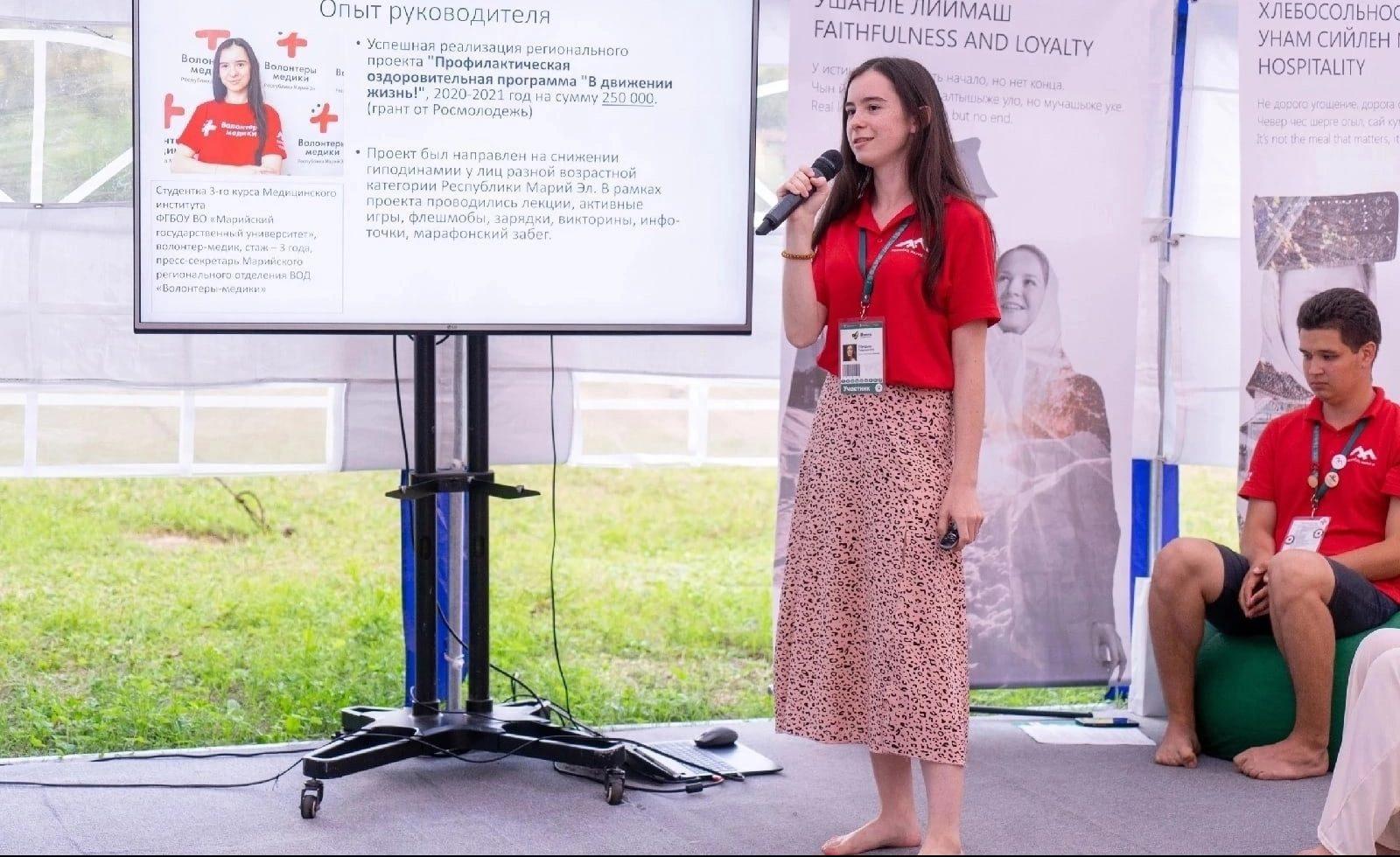 Десятый юбилейный Молодежный форум Приволжского федерального округа «iВолга» состоялся в очном формате с 21 по 29 июля 2022 в Самарской области. В программе форума приняли активное участие волонтеры-медики из Чувашии и Марий-Эл. Доброволец из Йошкар-Олы стлала победителем грантового конкурса форума и получила больше 180 000 рублей для реализации проекта «Онкопатруль 12».
